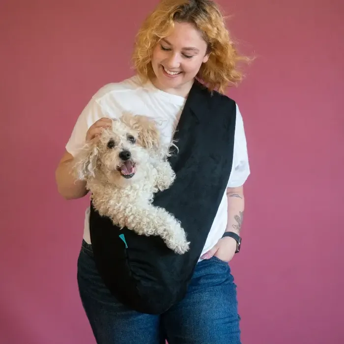 The Snuggit Plus+ is made for our longer, taller, and rounder pups, as well as double the pup - that require a little extra room. Made with a deeper pocket, The Plus+ can comfortably fit pups 15lbs to 25lbs. Choose from select colours in the Ultra Vegan Collection and Cotton Blend Collections. Each SNUGGIT has an attached harness hook inside for added safety.