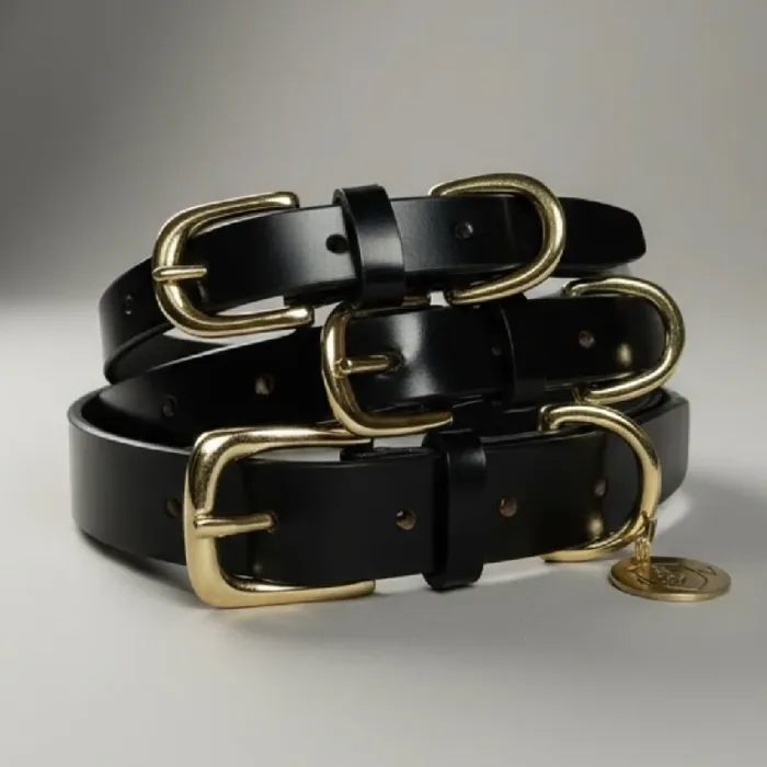 ICONIC VINTAGE® Classic Collar. Meticulously fashioned from a single piece of premium bridle leather, this collar is not just an accessory; it’s a statement. Each piece is expertly cut, edged, dyed, and burnished to achieve a stunning, mirror-like finish that reflects the quality and craftsmanship behind it. With time, this collar will develop a luxurious softness, yet remain robust enough to withstand the adventures of your big boys and big girls. Regular cleaning and conditioning will ensure it ages gracefully. Invest in a collar that embodies strength, elegance, and lasting durability.