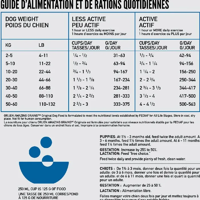 Canadian Brand. ORIJEN Amazing Grains Original delivers peak nourishment with 90% premium animal ingredients, including free-run chicken and turkey, and wild-caught fish. Enriched with a hand-selected blend of grains like oats, quinoa, and chia, it supports digestion with prebiotics, probiotics, and fiber. Featuring WholePrey inclusions and rich in DHA and EPA, this recipe promotes strong muscles, healthy skin, and immunity - providing complete, biologically appropriate nutrition for your dog.