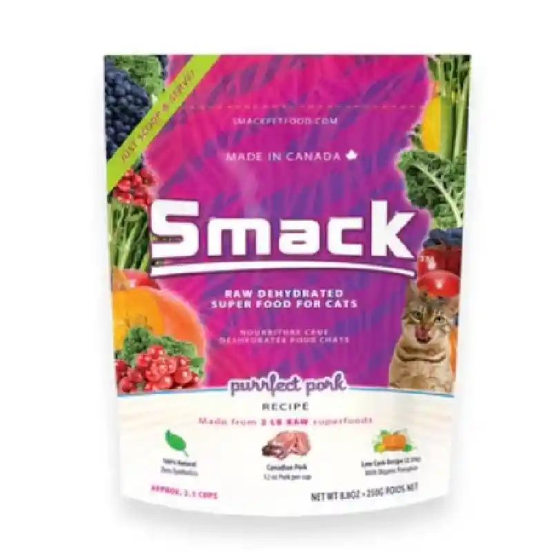 Made with 88% Manitoba bone-in pork with organs and 12% certified organic fruits and vegetables, this recipe supports feline vitality, digestion, immune health, skin and coat condition, and oral hygiene. Grain-free, high-protein, organic, hormone-free. Ingredients: Pork, Pork Bone, Pork Liver, Pork Kidneys, Pork Spleen, Pork Tongue, Pork Heart, Pumpkin*, Celery*, Apple*, Kale*, Cranberry*, Blueberry*, Turmeric*, Tocopherols*. Made in Canada.