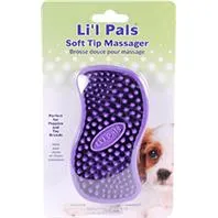 The dual-sided Li'l Pals Soft Tip Dog Massager reduces shedding and massages the skin of your dog. The dog massager features a comfortable and secure grip and helps distribute natural oils for a soft, shiny coat. It works on wet or dry coats and teaches your pup the pleasure of being groomed while promoting a healthy coat and home.