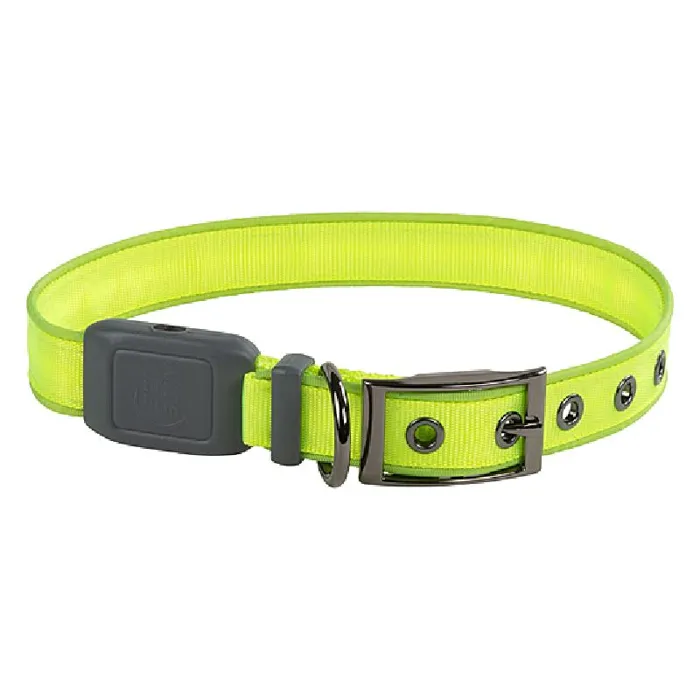 Welcome to a whole new world of nighttime visibility. Two ultra-bright LEDs send light through an integrated optical fiber to create full-length illumination so bright you need to see it to believe it. Featuring the convenience of rechargeability and easy push-button operation, this collar lights up for more than six hours on a single charge. Our optical fiber technology transmits light throughout the entire length of the collar without loss of light output and offers both constant glow and flash mode. The high-quality metal belt-buckle style closure is simple to adjust.