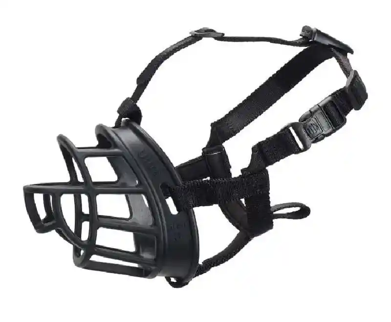 The updated Baskerville Ultra Muzzle is lighter and more comfortable, featuring a quick-clip neck strap with optional lock for easy fitting and a redesigned, metal-free head strap for improved adjustment. The heat-shapable basket ensures a tailored fit while allowing dogs to pant, drink, and take treats, offering safe, stress-free use without restricting natural behaviour.