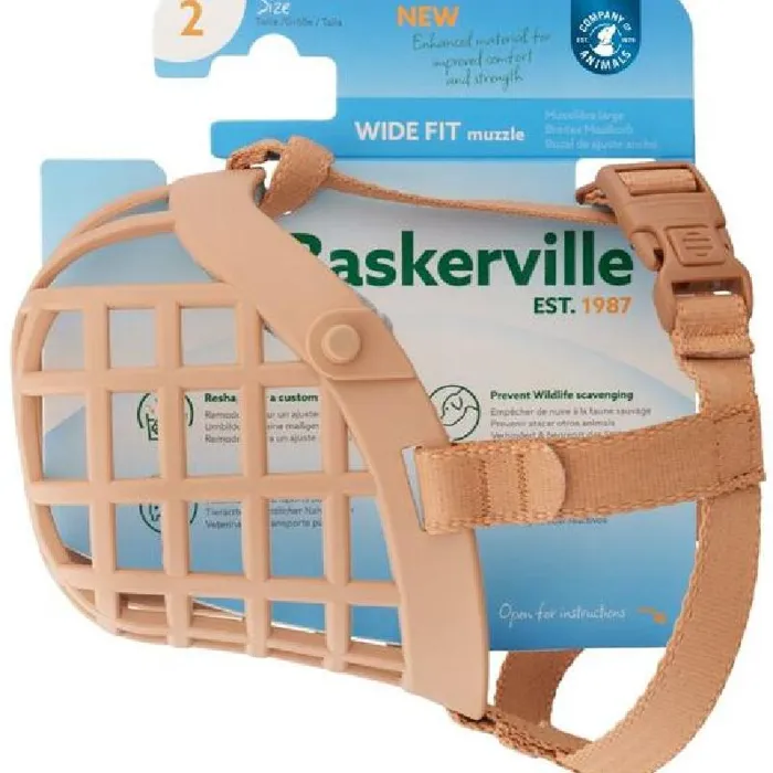 The new Baskerville Wide Fit Muzzle has been created using an improved Thermoplastic rubber (TPR) material, which is lighter than the plastic design you find on the market but stronger with increased durability. This unique material allows the Muzzle to be reshaped to a custom fit in hot water. The humane basket design ensures the dog’s welfare by allowing them to pant, drink and play. With an improved padded nose piece and a secure easy-to-adjust neck strap, all dogs can be comfortable wearing their muzzle, keeping dog owners happy and confident in all situations.