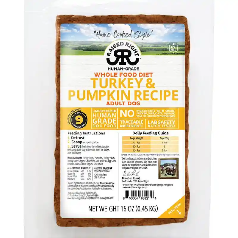 Raised Right | Dog - Turkey Pumpkin Recipe 8/16-oz