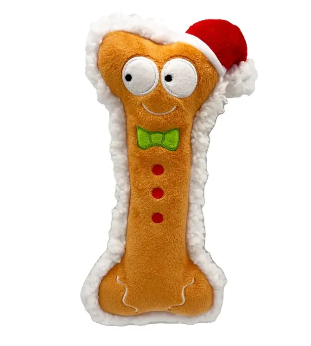 The Gingerbread Bone plush toy is all dressed up in its holiday best to bring the festive spirit right to your furry friend's playtime. With its cheerful smile and snug Santa hat, it's ready to be the first gift under the tree for your beloved pet this season!
