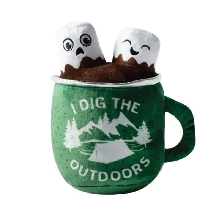 Welcome to Wagsdale! “Hot Cocoa Squad” is perfect for playtime, anytime. Made with a super loud squeaker and crazy crinkle paper details, this toy was designed with interactive play in mind. Whether you squeak, crinkle, or toss it, your pup will be feeling warm and cozy with this toy. Great for all sized dogs and not intended for aggressive chewers. Dimensions: 6" x 5"