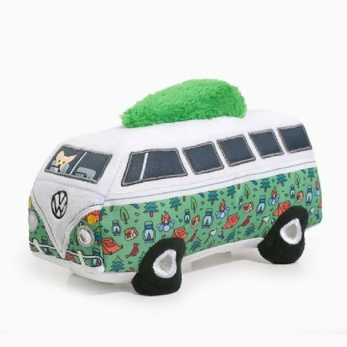 This officially licensed Volkswagen Camper Van dog toy brings camping vibes to playtime with its fun outdoor-themed print. Made from durable nylon plush, it’s perfect for fetch, chew, and everyday play. With a squeaker inside for extra excitement, this VW Camper Van is always ready to play.