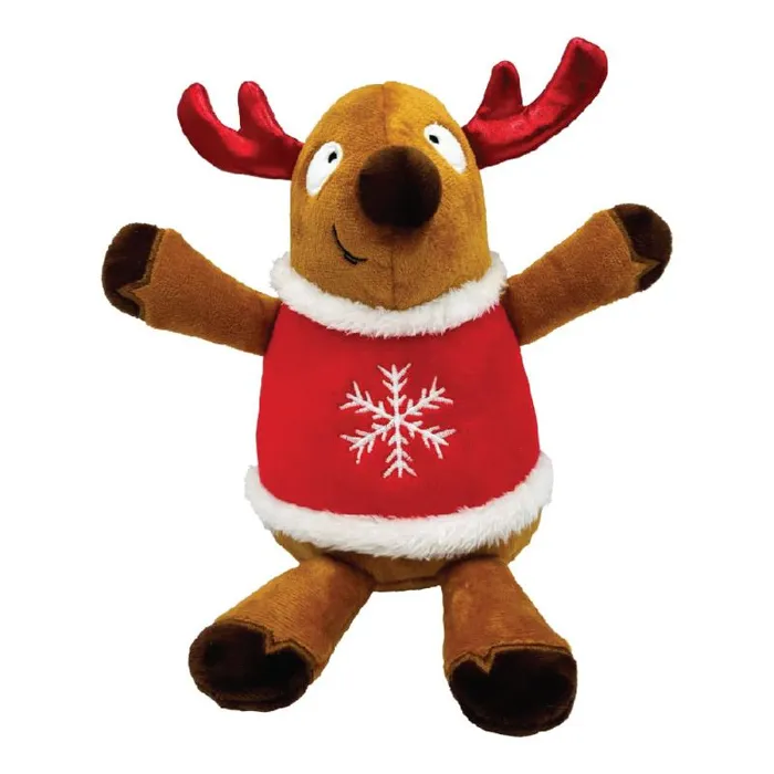 Looking for a toy that will spread holiday cheer and keep your furry friend entertained for hours? Meet Rocky Reindeer – the festive and lovable companion your dog will adore! With shiny red antlers and a bright red sweater adorned with a festive snowflake, Rocky is ready to become your pup's new best friend.