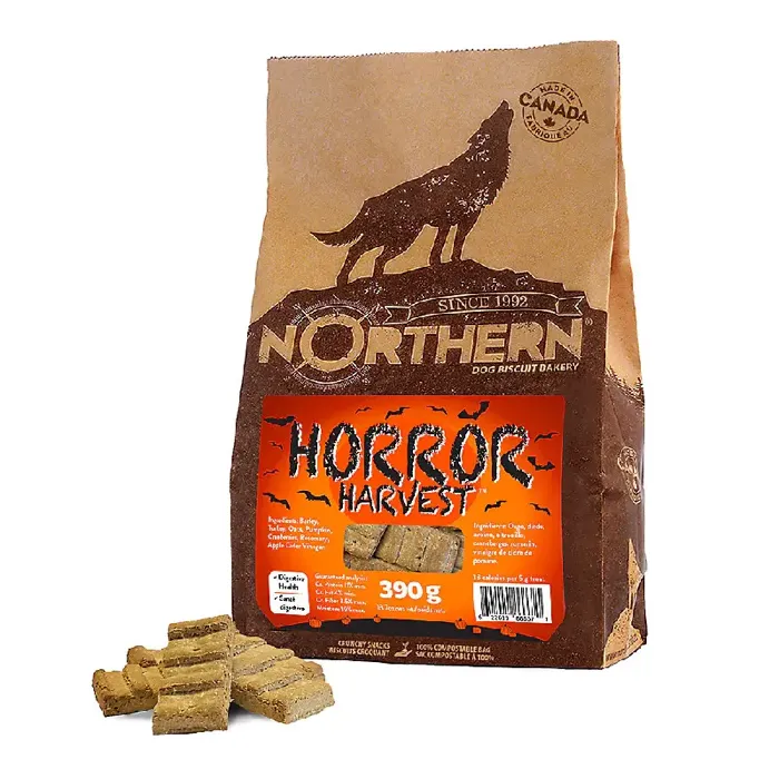 Introducing Horror Harvest, a spectacularly spooky and FUN new flavor fresh from the bakery for pet parents looking to include their dogs in their Halloween celebrations. Baked in small batches with limited ingredients and are naturally preserved and packaged in a 100% compostable bag. At only 18 calories per 5 g biscuit, these biscuits are perfect for treating, rewarding and bonding with your dog.