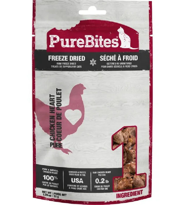 PureBites is a proudly Canadian company treating and feeding pets from coast to coast since 2005. Our chicken heart treats are made fresh & pure, using a delicate freeze drying process that helps preserve fresh RAW whole food; with 0.2lb of RAW chicken heart per 1.09oz bag, our bags are packed with more protein and nutrients.