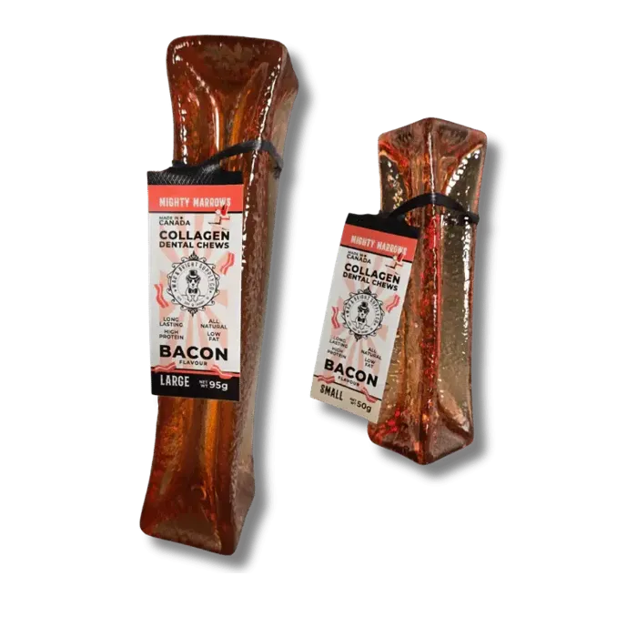 Mighty Marrows Collagen Dental Chews are a delicious, nutritious way to support your dog's oral health. Each long lasting collagen chew is designed to naturally clean teeth, freshen breath, all while being gentle on your dog's gums.